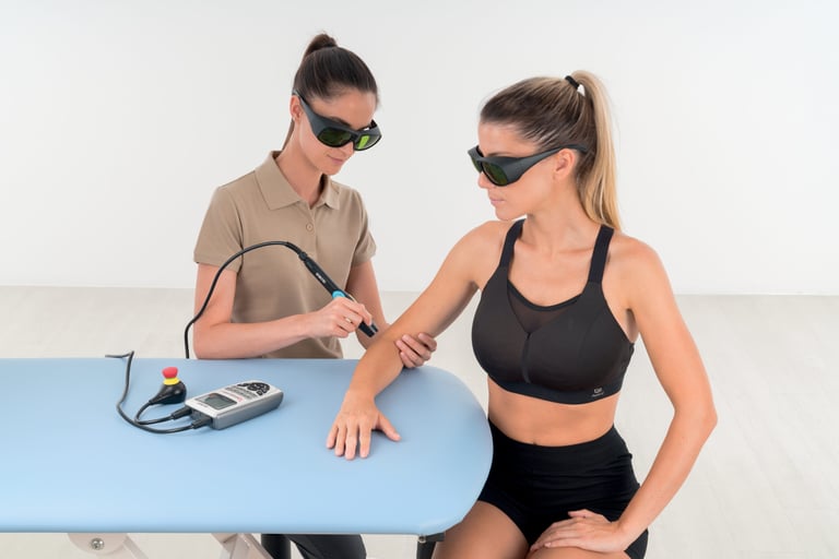 Laser therapy supports physiotherapy rehabilitation programmes by stimulating biological repair processes and helping accelerate recovery.