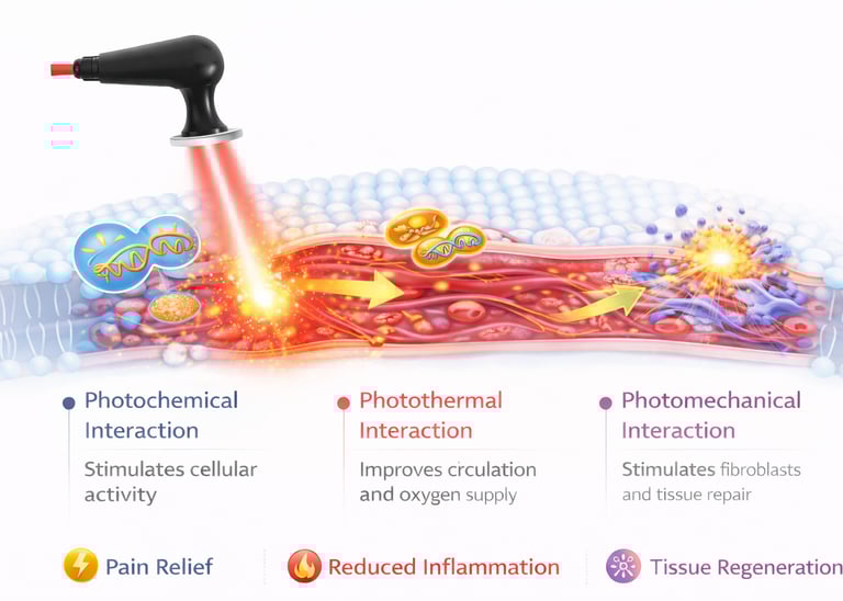 Laser therapy works through the interaction between light energy and biological tissues. these interactions stimulate cellular processes that support tissue regeneration and rehabilitation.